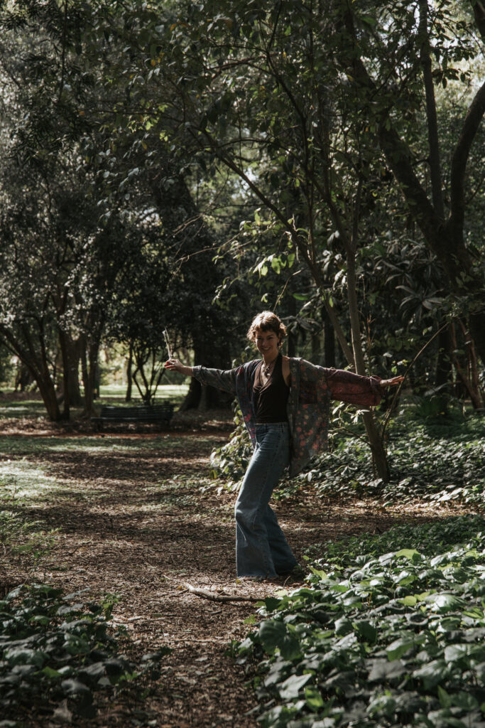 Aprendí a jugar sin tanta regla en esta vida. Y desde ahí, pude ver mi intensidad y mi gran valiente. Considero ser una responsable e infinita aprendiz del mundo y tomo todo lo que forma parte de la naturaleza como fuente de inspiración.